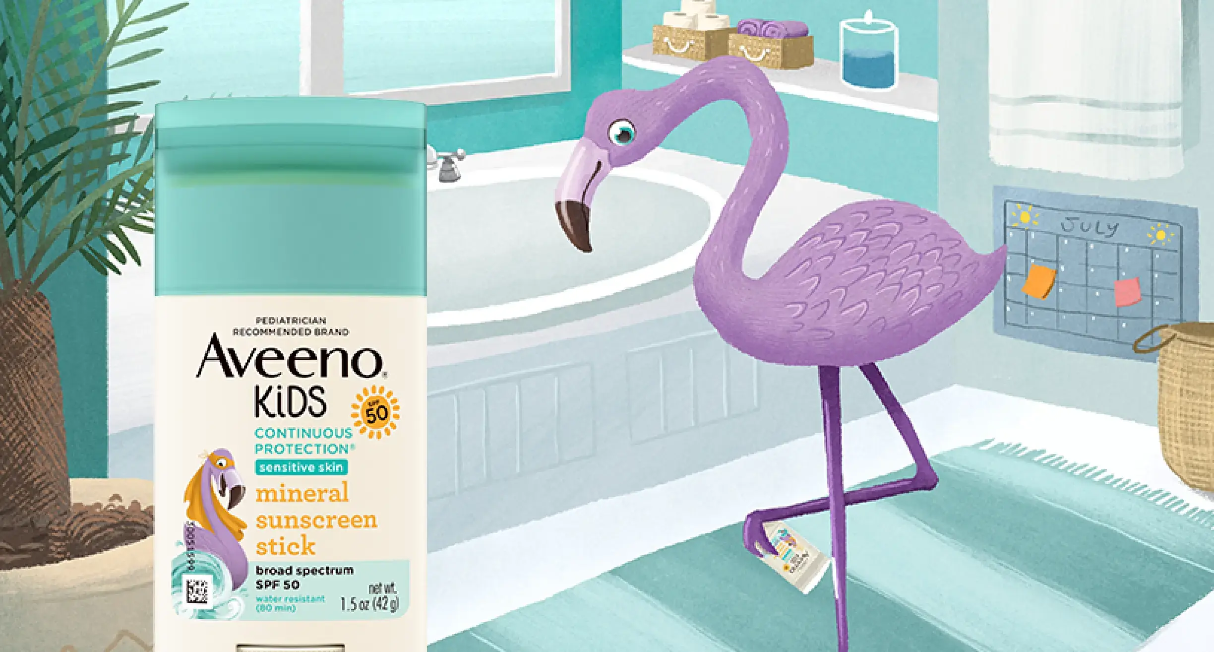 See how Dot the Flamingo keeps her face and body protected from the sun, while hydrating her skin under any condition.